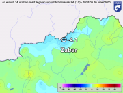 Zabarban -4,1 fokig csökkent a hőmérséklet, de másutt is előfordult fagy 2 méteres magasságban is. A több mint 110 éves napi rekord (-4,2 fok 1906, Dobogókő) megdöntése két tizeden múlt. |