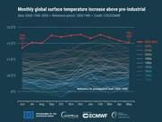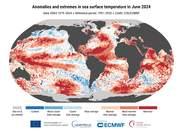 2024 nyarán mérték globálisan a legmagasabb átlaghőmérsékletet a feljegyzések kezdete óta, 0,69 Celsius fokkal volt több az 1991–2020-as normálnál, és ezzel felülmúlta a korábbi 0,66 Celsius fokos rekordot, ami 2023 nyarán született. 2024 augusztusa világviszonylatban a legmelegebb augusztus volt holtversenyben a 2023-assal. 16,82 Celsius fokos középhőmérsékletével 0,71 fokkal haladta meg az 1991–2020-as augusztusi átlagot, és 1,51 fokkal volt magasabb az iparosodás előtti szintnél. |