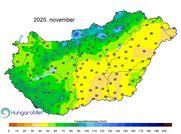 A 2025. november középhőmérséklete a HungaroMet Nonprofit Zrt. mérései alapján országos átlagban 5,8°C, ami átlag közeli érték, 0,3 fokkal haladja meg az 1991–2020-as átlagot. Március óta a november volt az első hónap, ami országos átlagban a szokásosnál csapadékosabb volt. A 2025-ös november csapadéka országos átlagban – az eddig beérkezett adatok alapján – 58,9 mm, ami 21%-kal átlag feletti érték (1991–2020-as átlag: 48,6 mm).
