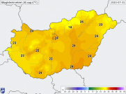 Az éghajlati átlagok alapján július utolsó és augusztus első napjai az év legmelegebb időszaka Magyarországon. Július 23 és 25 között a 30 éves átlag (1981–2010) alapján a maximum hőmérséklet 27-28, míg a minimum 16 fok körül alakul. Idén eddig a legmagasabb hőmérsékletet július 8-án, Budakalászon mérte az OMSZ automata hálózata, ez 39,3 fok volt. Az elmúlt napokban ismét többször emelkedett 35 fok fölé a hőmérséklet, de eddig egyetlen hőmérsékleti rekord sem dőlt meg, köszönhetően az igen magas szélsőértékeknek, amelyek zöme a 2007-es hőhullám idején született. Az előrejelzésekben már jól látszik a jelenlegi hőhullám vége, de előtte még pár napig néhány országos és budapesti hőmérsékleti rekord veszélyben lehet. |