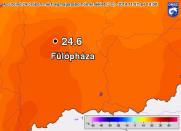 A kontinensünket napok óta kettészelő frontzóna előoldalán áramló, az átlagosnál jóval melegebb, szubtrópusi eredetű levegő és a napsütés együttes hatásra több, mint egy fokkal megdőlt az eddigi napi maximum-hőmérsékleti rekord (a 15 óráig beérkezett előzetes adatok alapján). A Kecskeméthez közeli Fülöpházán 24.6 fokig melegedett a levegő. Az előző rekordnál (1963, Mezőhegyes 23.5 fok) több dél-alföldi állomás is magasabb hőmérsékletet mért. |