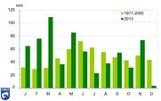 Az elmúlt években rekord csapadékú és rekord száraz évek váltották egymást. A megszokottnál jelentősen melegebb és egyben aszályosabb 2011-es és 2012-es évek után 2013 a 9. legmelegebb évnek adódott hazánkban az elmúlt 113 év viszonylatában, a csapadékösszegek szempontjából pedig egy éven belül mind a jelentős csapadéktöbbletet, mind a súlyos szárazságot megtapasztalhattuk. Részletes elemzés olvasható az Éghajlati visszatekintőben. |