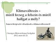 Ismeretterjesztő előadások a klímaváltozás kérdéskörével kapcsolatban. Az Országos Meteorológiai Szolgálat a klímaváltozás témakörében 2011-ben összeállított kérdőíveihez kapcsolódóan 2012. március 21-én ismeretterjesztő előadásokat szervezett. |