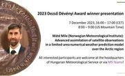 Dévényi Dezső kollégánk emlékére az utódok online előadóülést szerveztek 2023. december 7-én. A rendezvényen a Dévényi Dezső Numerikus Prognosztikai Emlékérem 2023. évi díjazottja, Mile Máté tartott szakmai előadást. |