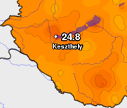 A minimumhőmérsékleti rekordok után újabb napi rekord született: Dévaványán 38,4 fokig emelkedett a hőmérséklet a legmelegebb órákban, ez az érték új napi országos maximum hőmérsékleti rekord. A korábbi rekord 37,9 fok volt, amelyet 1994-ben jegyeztünk fel Szeghalom állomásunkon. |