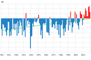 Az Éghajlatváltozás oldal megfigyelt hazai változásokat bemutató oldalain szinte naprakész éghajlati információkat lehet böngészni a hazai hőmérséklet- és csapadék tendenciákról. A 120 év hosszú idősorokat vizsgálva megállapítható, hogy a melegedés egyértelmű Magyarországon is, a csapadékhullás pedig szélsőségesebbé vált. |