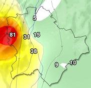 A július 24-én este érkező ciklon a nyugati országrészbe jelentős mennyiségű csapadékot hozott. Több településen a 100 mm-t is meghaladta a 24 óra alatt lehullott csapadék mennyisége. A napi csapadékrekord megdőlt: Vése községben 178 mm csapadék hullott, több, mint hetven milliméterrel meghaladva az eddigi rekordot. Az eddigi csúcstartó Nyírlugos volt, ahol 2010-ben ezen a napon 106,8 mm-t mértek. |
