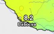Változékony, az évszakhoz képest igen enyhe és szeles időben volt részünk az elmúlt napokban. Megdőlt a február 10-ére vonatkozó legmagasabb minimum hőmérséklet országos rekordja: Babócsán mindössze 8,2 fokig süllyedt a hőmérséklet. A régebbi rekordot, 7,6 fokot Pannonhalmán regisztráltuk 1958-ban. Megdőltek a szélrekordok is: Kékestetőn csaknem orkán erejű széllökést, 32,7 m/s-ot (117,7 km/h) mért automatánk, amely 0,7 m/s-mal magasabb érték, mint az 1984-ben, Nagykanizsán rögzített 32,0 m/s-os (115,2 km/h) rekord. |
