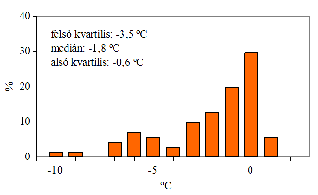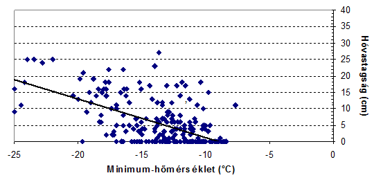 A minimum-hőmérséklet és a hótakaró kapcsolata derült, szélcsendes, hideg légköri helyzetekben