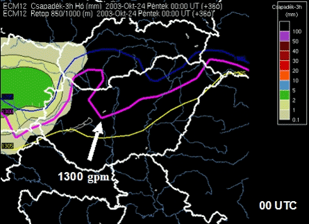adott időpontra szóló +36 órás ECMWF modell-előrejelzés (jobb oldalon))