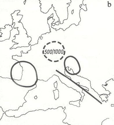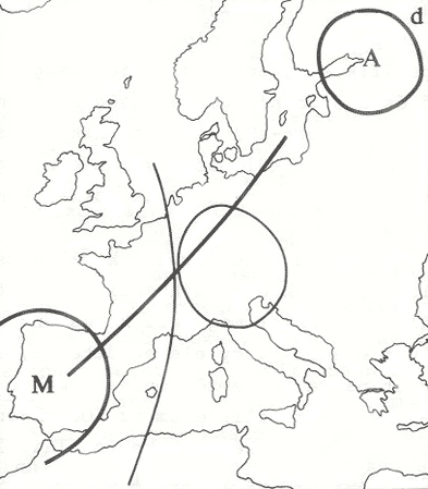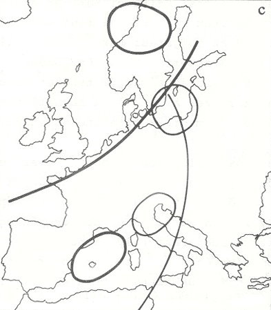 c/ West peremháborgási (vastag vonal), Vonuló mediterrán (vékony vonal)