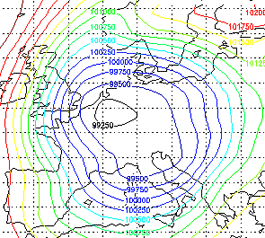 A budapesti nagy havazásokat vizsgálta Babolcsai György, és eseteire saját, a havazás idejére vonatkozó átlagos nyomási képen alapuló szinoptikus típusokat alkotott, azokat elemezte (4-5. ábra).